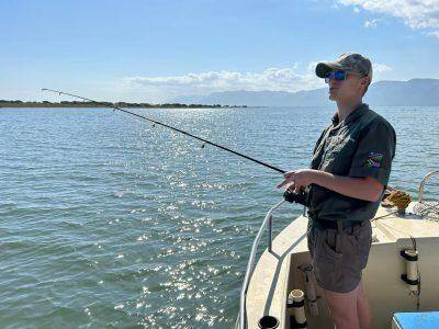 The kids just cannot resist a “big pig” and there were plenty of “tuskers” in the area. Unfortunately, Slade was “out” with a broken shoulder from Rugby, and Logan was thus in his element. Slade at least still managed to land a small Tiger Fish. Tamlyn missed a few pigs that were fleeing across the grassland areas but ended up with a nice little sow for her trouble. Apparently, Warthog hunting is not a favorite hunting activity of Tamlyn’s.
