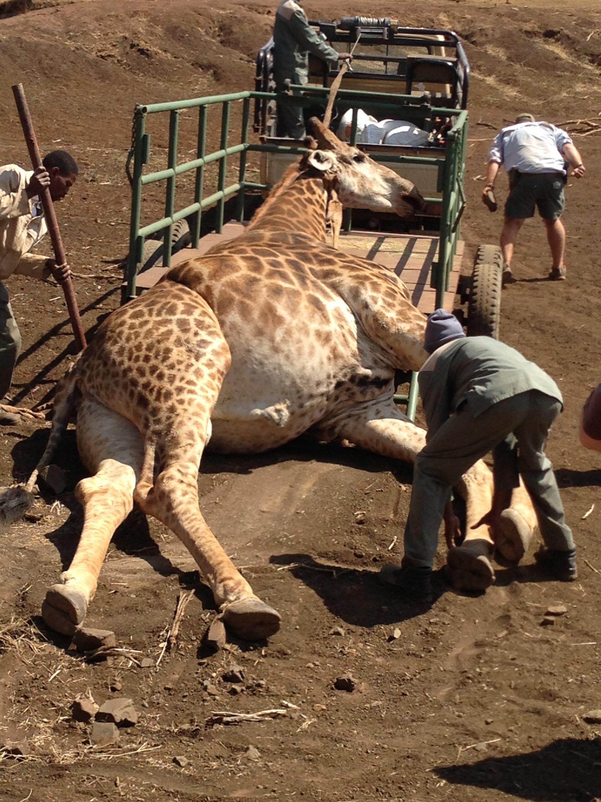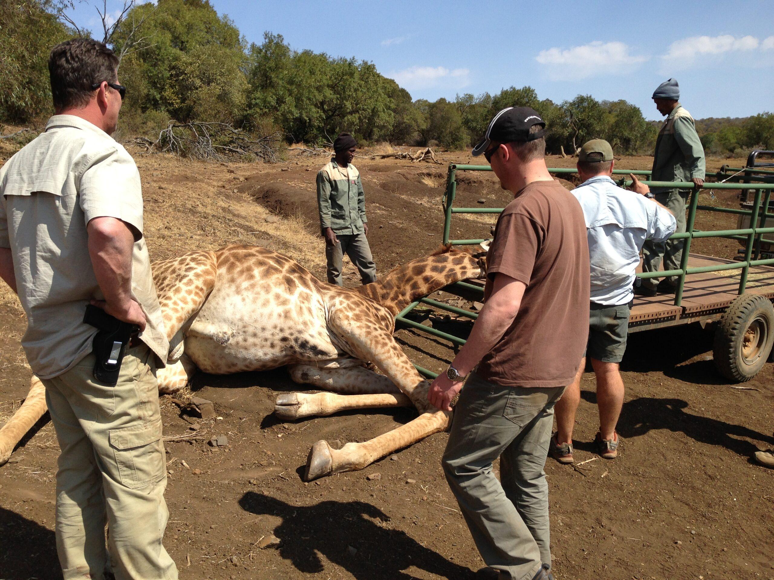 One of the biggest challenges when Giraffe hunting is processing the carcass. If the team of skinners takes too long to process in hot temperatures, the Giraffe trophy can be ruined due to “hair loss”.