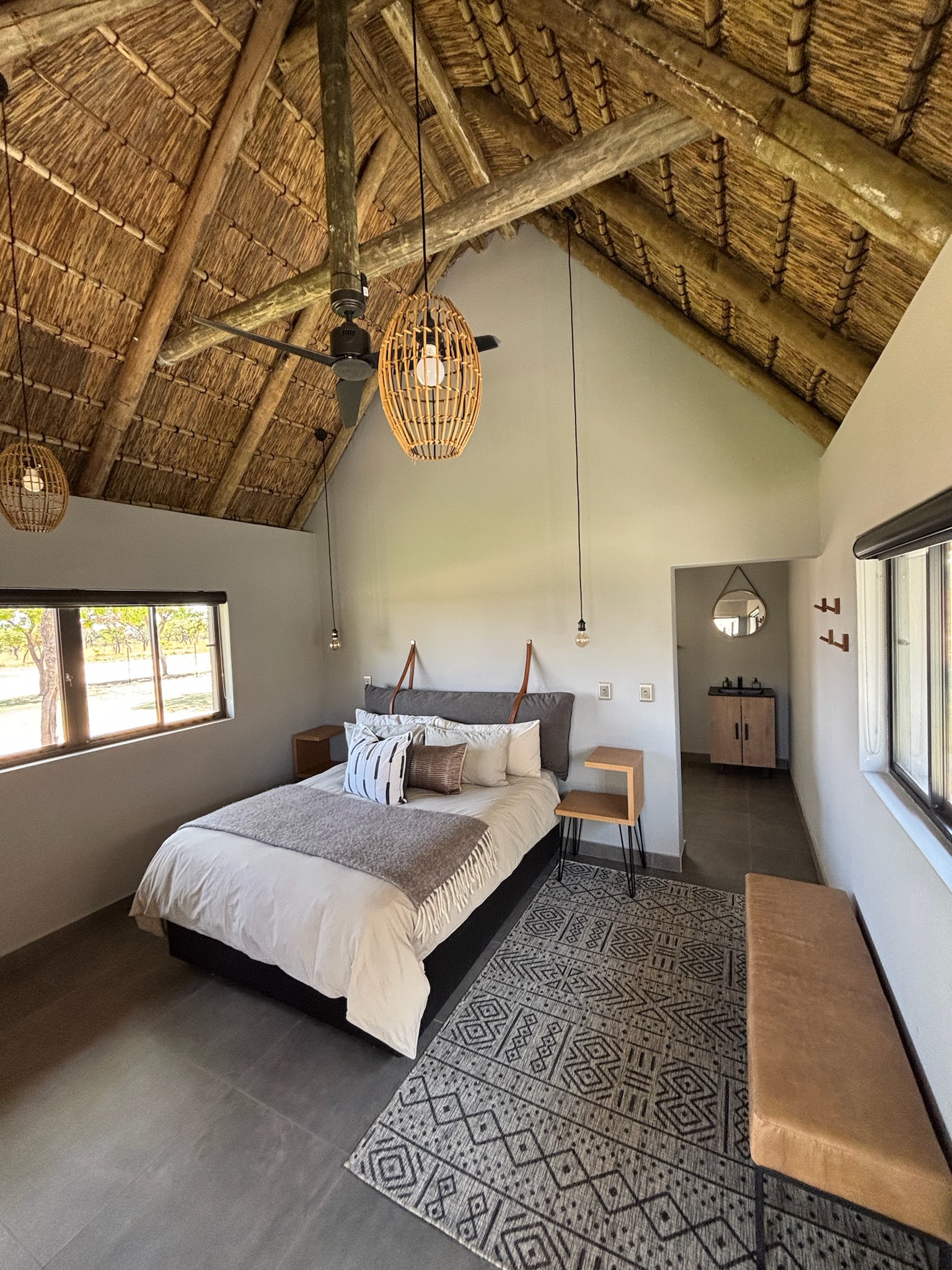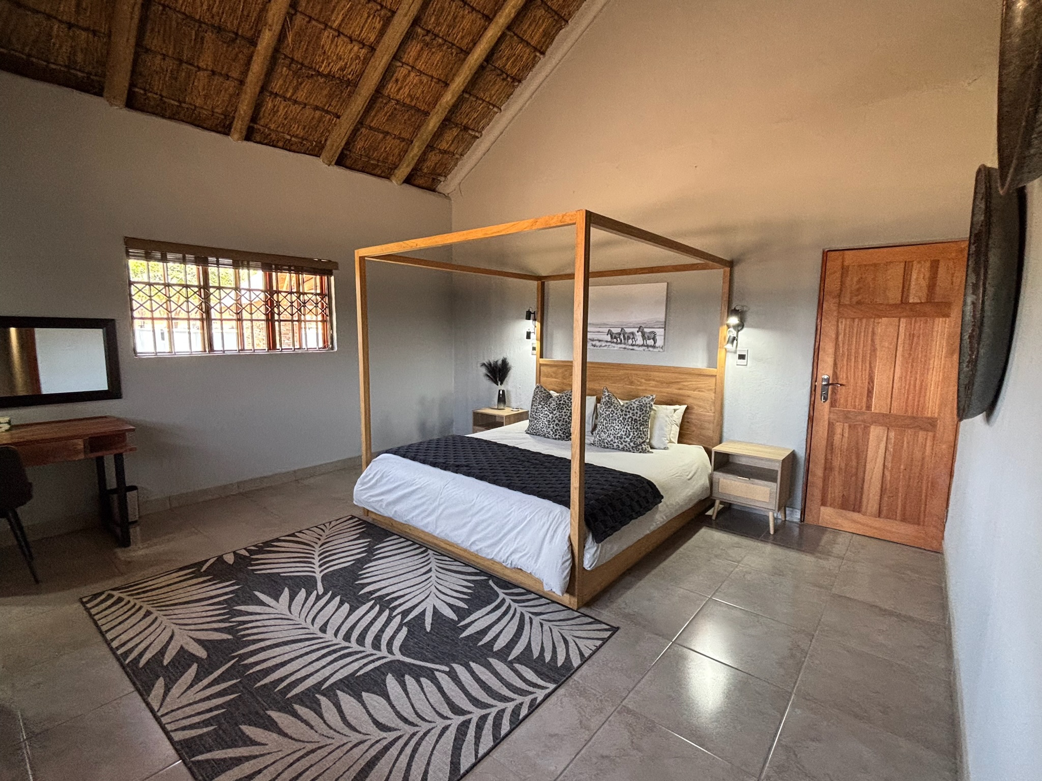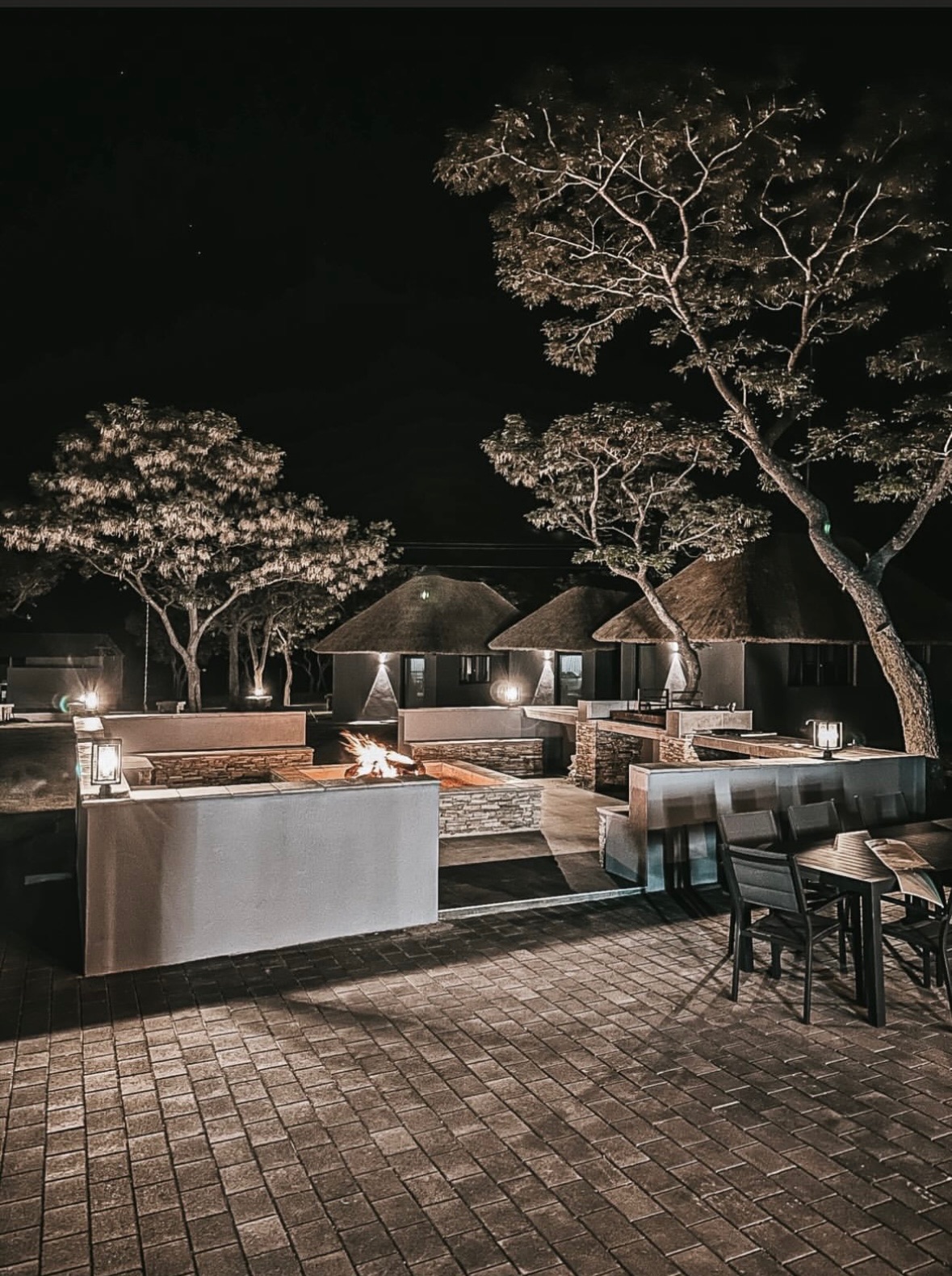 Accommodation is provided in an exclusive African safari lodge offering a refined balance of luxury, comfort, and authentic bushveld atmosphere. Guests enjoy private, spacious en-suite suites with premium bedding, hot showers, and daily housekeeping. The lodge is designed for privacy and relaxation, providing a quiet retreat after demanding days in the field. Gourmet meals are freshly prepared and served daily, combining high-quality local ingredients with international cuisine. Breakfasts are tailored to hunting schedules, while elegant dinners are enjoyed in the lodge dining area or beside the fire under the African sky. Guests have access to comfortable lounges, shaded verandas, and outdoor fire pits. Daily laundry service is included, ensuring a seamless, high-end safari experience from arrival to departure.
