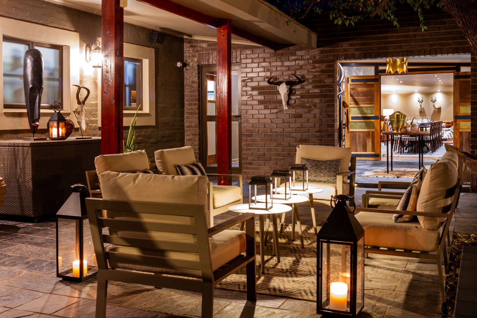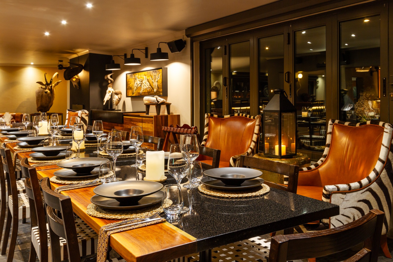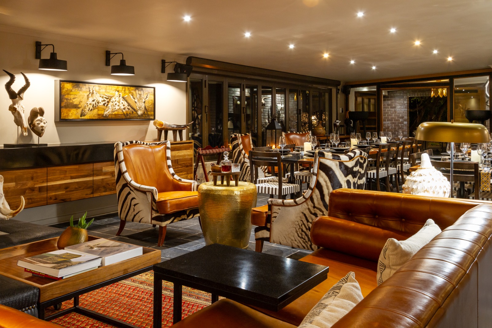 Escape to five-star luxury in the wild, just two hours from Kimberley Airport. Four private villas host up to 22 guests, each with air conditioning, fireplaces, en-suite bathrooms, private lounges, Wi-Fi, and daily service. Indulge in gourmet dining featuring local cuisine, venison specialties, and South African wines. Relax at the spa, heated pool, or gym, and browse the curio boutique. Guests enjoy exclusive use of the lodge and concession, with warm, personal hospitality from attentive staff and hosts who make every stay intimate, memorable, and conservation-focused.
