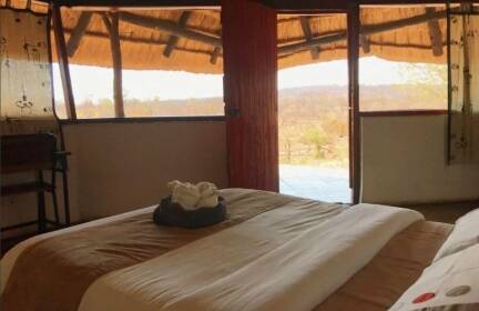 This classic safari camp has all the necessary amenities while retaining its rustic charm as a safari hunting camp. Independent brick lodges each have ensuite bathrooms, safes, outdoor showers, electricity, and a fridge. The lodge, with central dining and entertainment areas has mobile network coverage and internet.