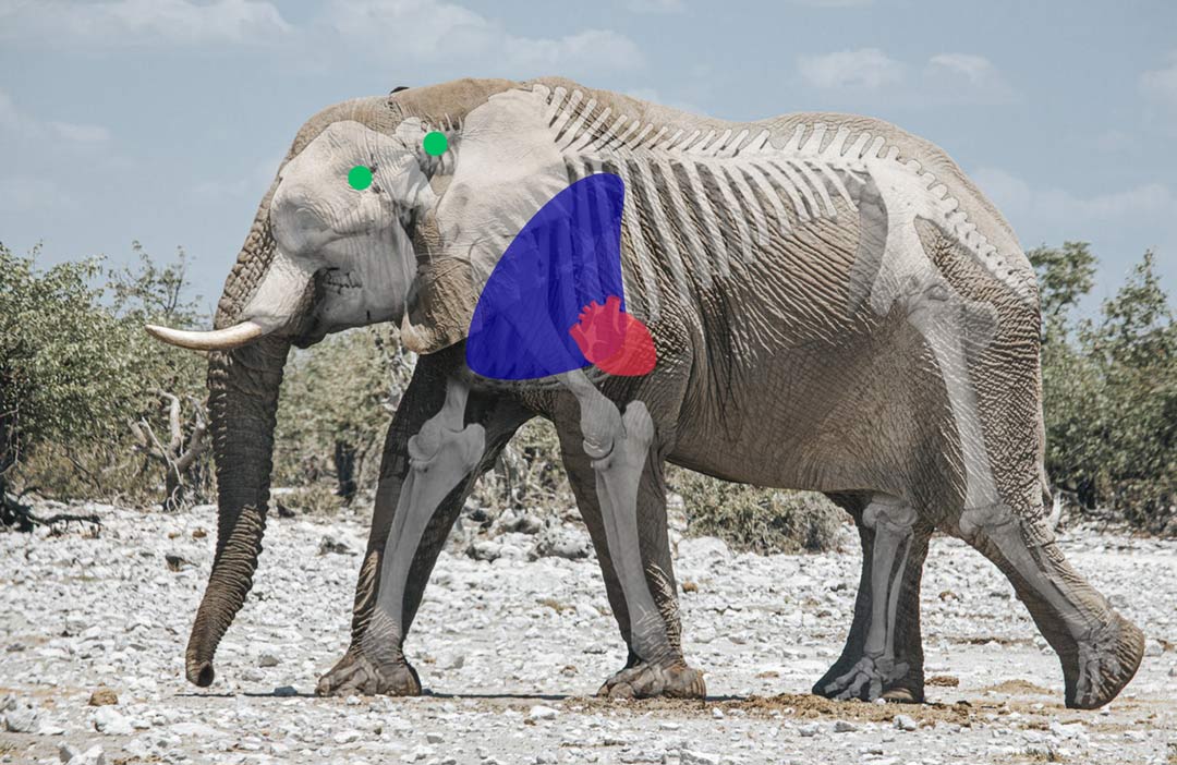 African elephants are the largest land animals, with adult males weighing between 4,000-14,000 pounds. Females are smaller but still have a considerable mass, weighing 6,000-8,000 pounds. An elephant’s skin is grey and wrinkly in appearance, with African elephants being more wrinkled than their Asian counterparts. These wrinkles act as a cooling mechanism by increasing the skin's surface area. The additional skin and wrinkles trap moisture that then takes longer to evaporate in the heat. Even though its skin is very tough, it is sensitive, and elephants, like most hairless mammals, are subject to sunburn. An elephant's trunk is an extension of the upper lip and nose and functions for breathing, feeding, smelling, drinking, lifting, grasping, feeding, dusting, communication, sensing, and as a defence or protection. The trunk contains about 100,000 muscles and tendons that give it great strength and amazing flexibility, with their trunks capable of expanding, contracting, and moving in various directions.